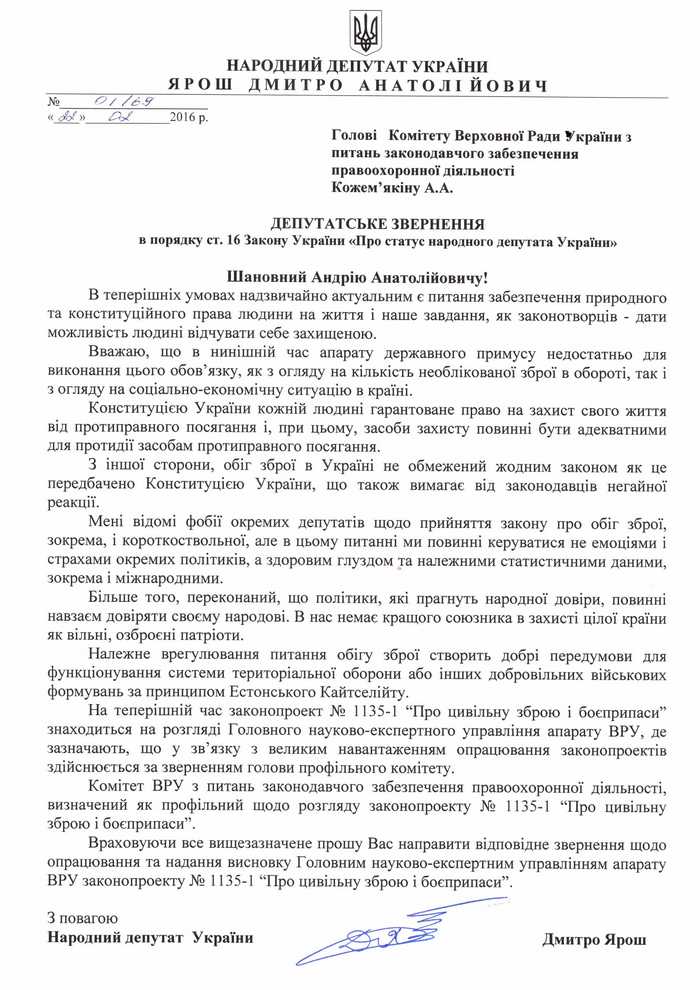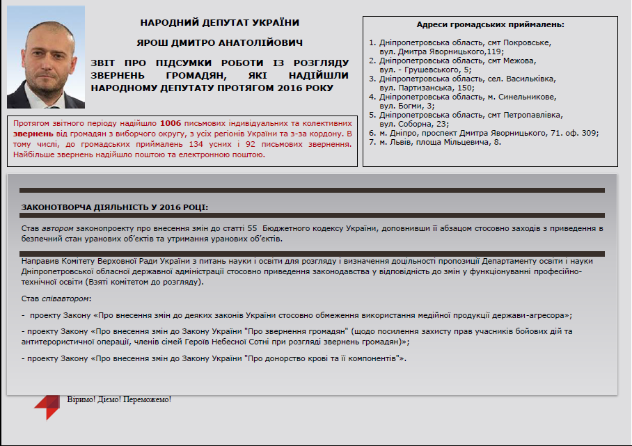 Звіт народного депутата Дмитра Яроша про підсумки роботи зі зверненнями громадян