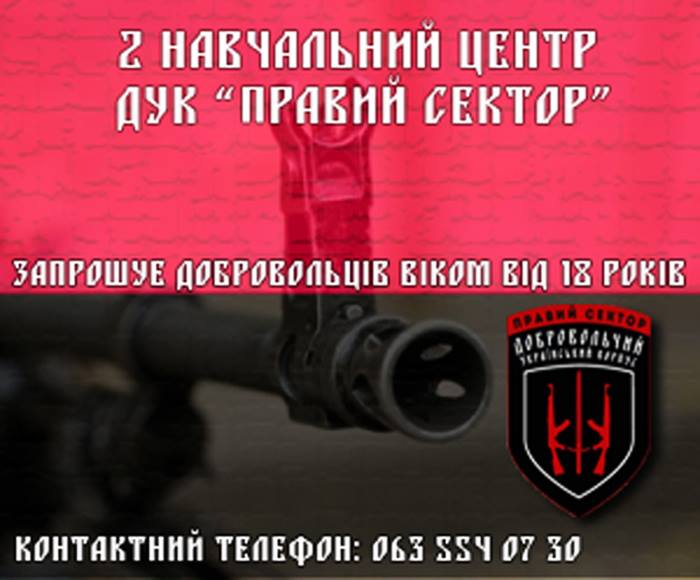 Згідно наказу Командира ДУК «Правий сектор» друга «Летуна» № 49, на півдні України створений Другий Навчальний центр ДУК «Правий сектор». На вишкіл з подальшою відправкою на фронт запрошуються добровольці віком від 18 років. Вишкіл складається з базової і основної військової підготовки та спеціалізованої частини. Термін проходження вишколу - два місяці. Всі бійці, що пройдуть підготовку протягом зазначеного терміну, будуть відправлені в бойові підрозділи Добровольчого Українського Корпусу «Правий сектор».