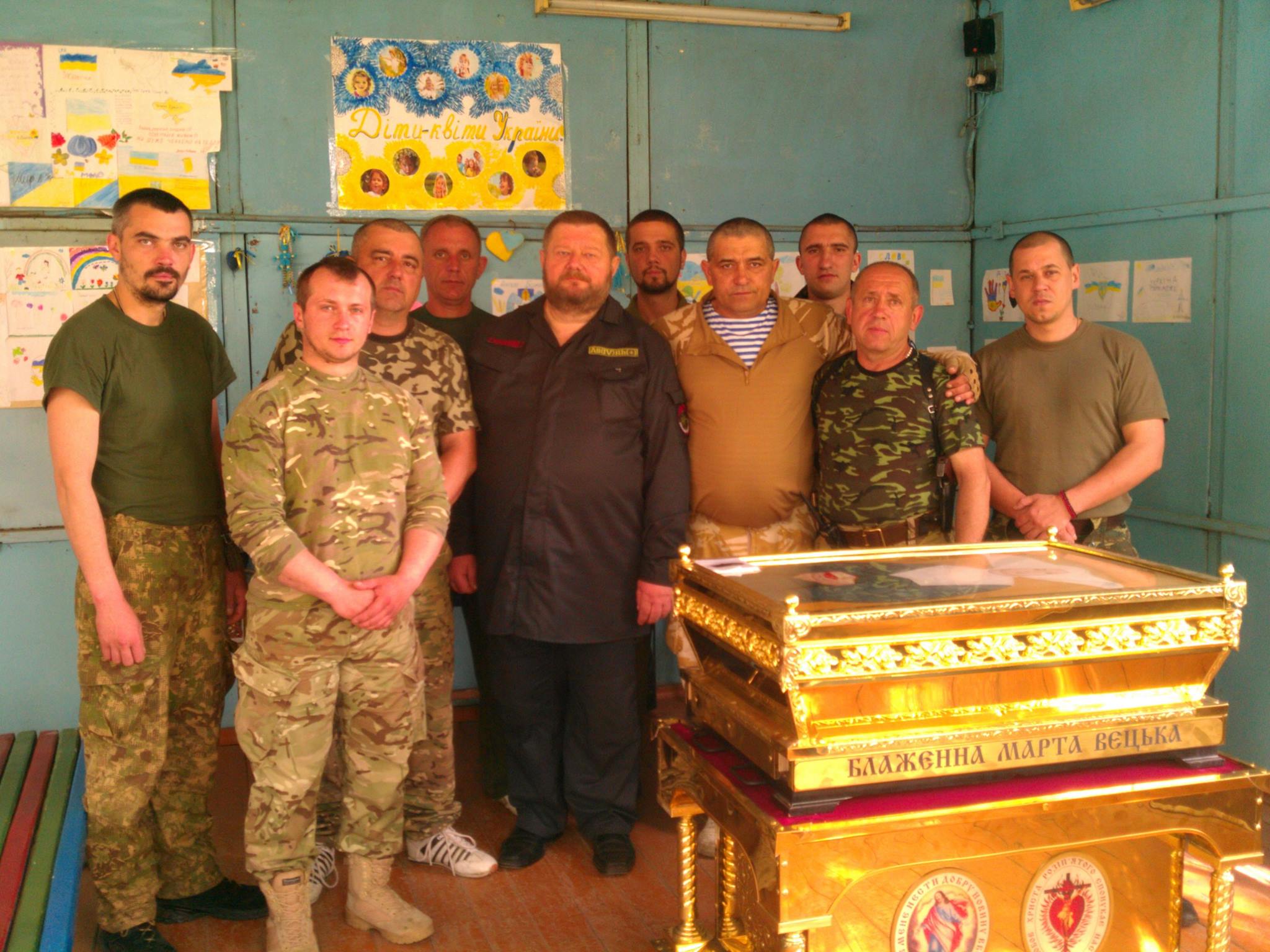 26-27 травня у 8 Окрему роту Добровольчого Корпусу Правого сектора священик із Маріуполя отець Віталій і монахиня - сестра Марта привезли мощі Блаженної Марти Вєцкої. Блаженна відома тим, що була медсестрою у військовому госпіталі у часи Першої світової війни. Вона з любові до ближнього пожертвувала своїм життям, рятуючи бійців, хворих на тиф. Знаково, що мощі Блаженної Марти провели ніч у роті добровольців, які теж готові віддати своє життя за співвітчизників. У капеланії 8 роти був проведений вечірній молебень а також вранішній акафіст. Цю хвилюючу подію для бійців організували капелани ДУК.