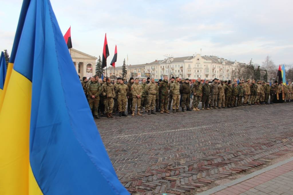 Кілька сотень активістів громадських організацій, Національного Руху ДІЯ, бійці ОТР «Волинь» УДА з Рівненщини, Тернопільщини, Житомирщини, Миколаївщини, Сумщини та Чернігова зібрались на центральній площі міста, щоб вшанувати загиблих в цій неоголошеній війні з російським окупантом. Разом з міською та обласною владою вони поклали квіти до постаменту Героям Небесної Сотні.