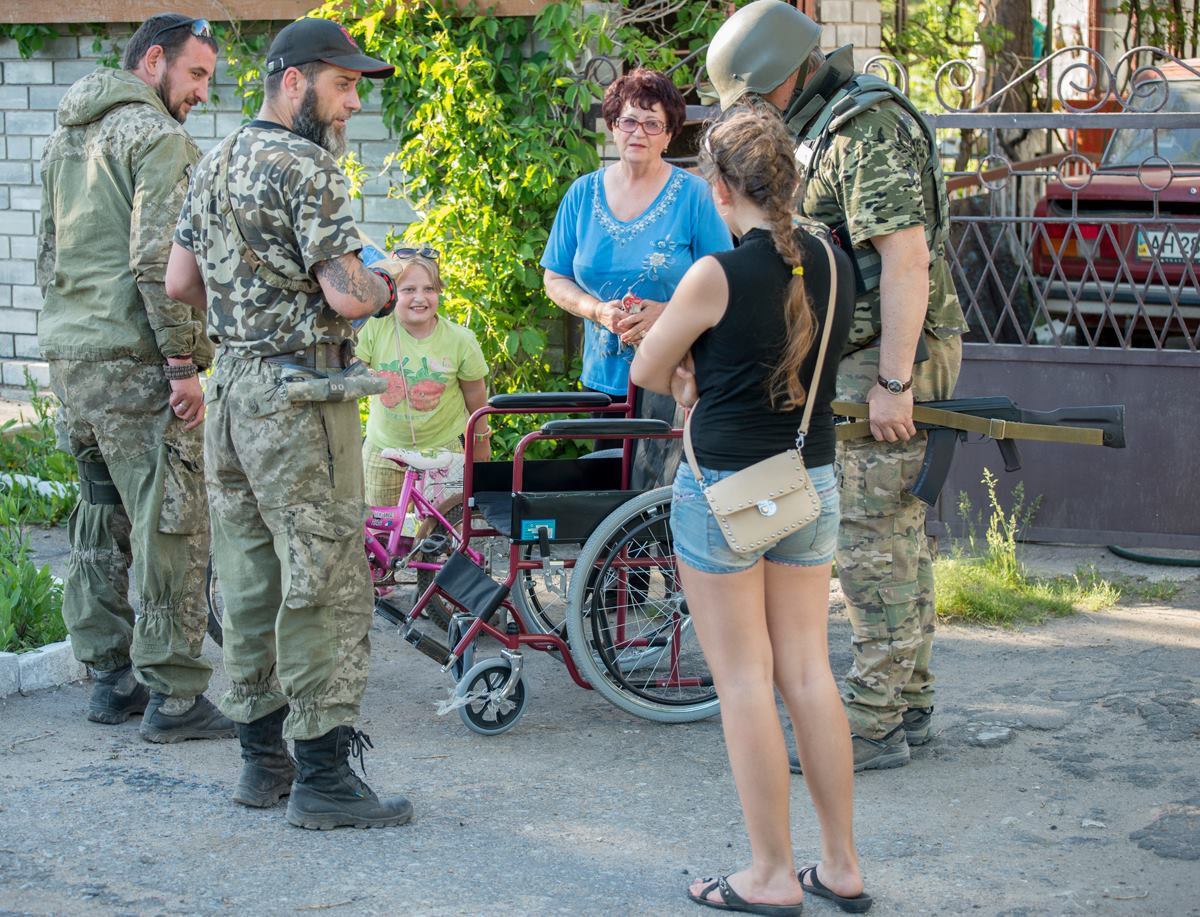 Вічні речі від війни не залежать. Доброта, любов, милосердя – якості людських сердець, що здатні у важкі часи проявлятись з іще більшою силою. Так сталось і в Широкиному. Їхали якось вулицею двоє ДУКівців-розвідників. Побачили біля дому, акурат у «червоній зоні», дівчинку на дитячому інвалідному візку. Зупинились, заговорили до малої. У Даші виявилась складна хвороба ніжок. Дитина пережила вже кілька операцій, але ходити їй все одно важко.
