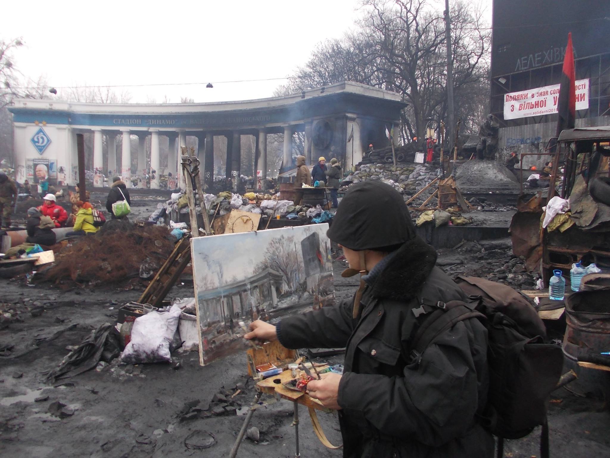 Зима 2014 року, Київ, вулиця Грушевського, повстанські барикади, вишикувані шеренги «беркутні», дим від паленої гуми, розрив шумових гранат, постріли із вогнепальної зброї, рев сирен, перші жертви патріотів і… за мольбертом одинокий невідомий художник, що у цьому пеклі розпечених страстей та емоцій увіковічнює черговий подвиг нинішнього покоління українців, пише історію… Все у долі секунд промайнуло, пролетіло у пам’яті, відродилося у спогадах про той буремний час. Як і безпомилкове враження, що перед тобою не просто твій колега по професії, а сформована національно-свідома особистість, оригінальний митець, побратим по боротьбі за торжество національної ідеї, Художник з великої літери – філософ, мислитель, воїн і націоналіст.